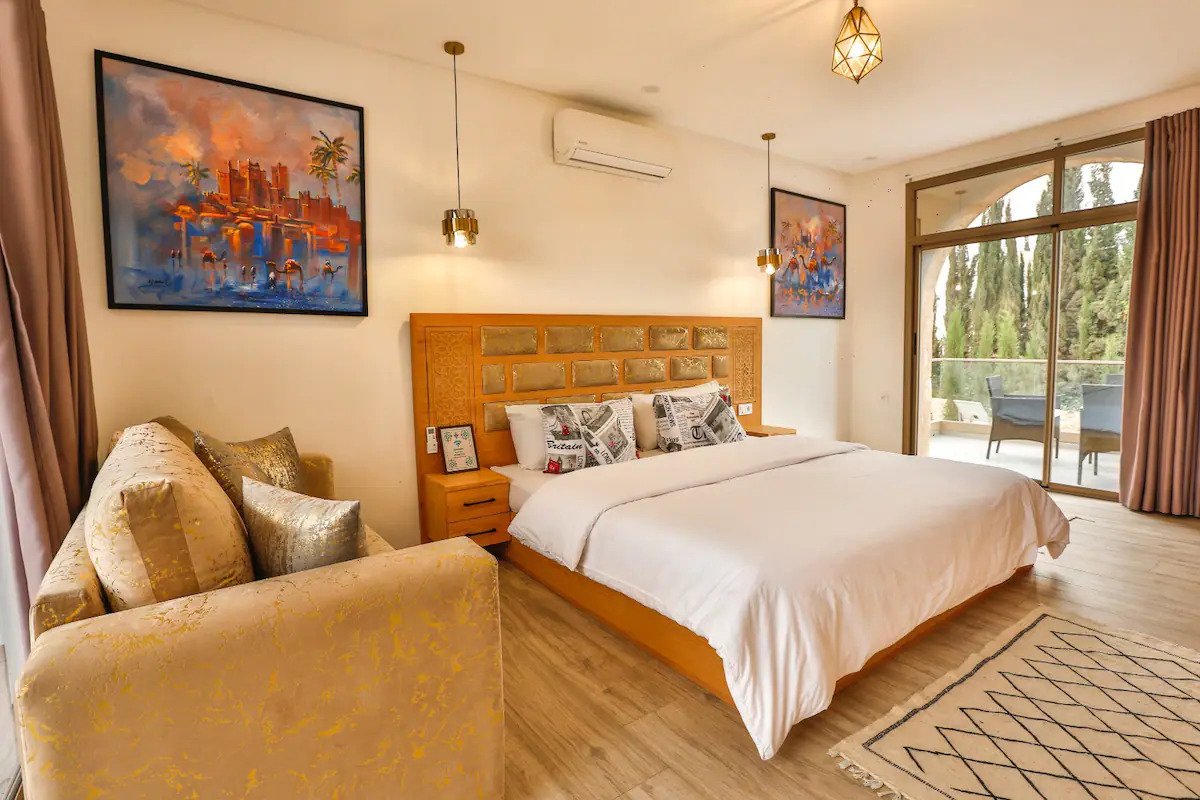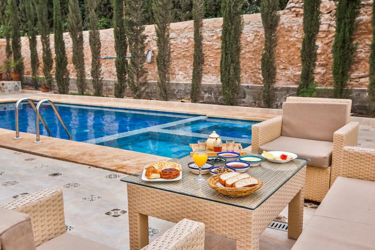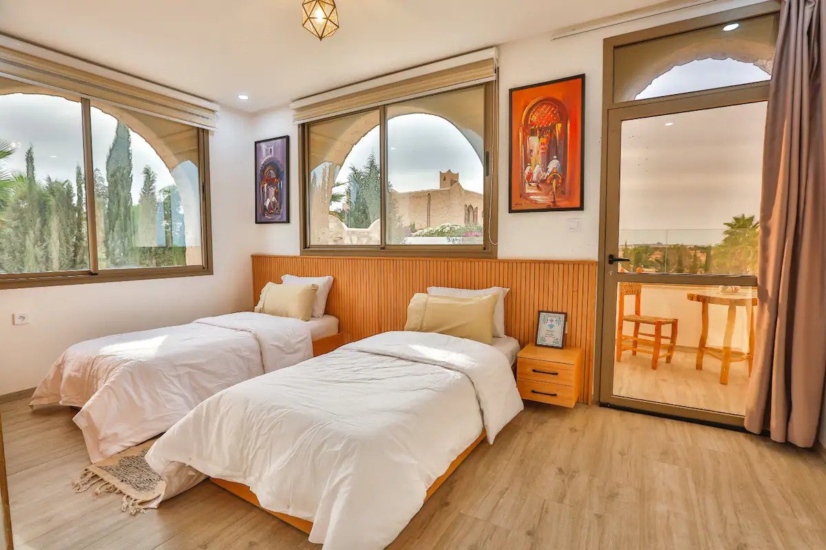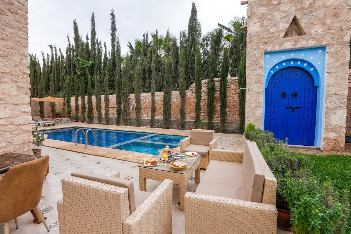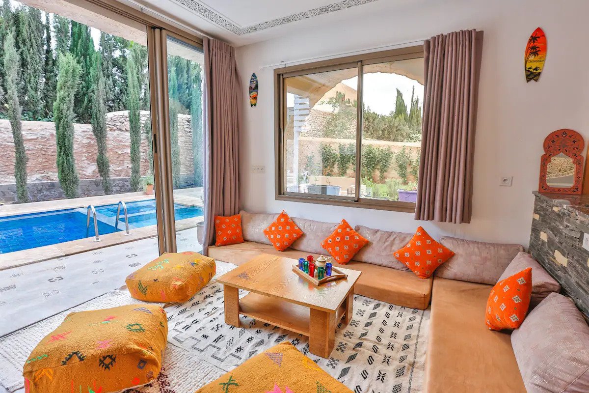 La Villa Anir est une superbe villa à Essaouira 4 chambres avec piscine privée, idéale pour un séjour haut de gamme dans un cadre paisible. Conçue pour accueillir familles et groupes, elle offre un équilibre parfait entre confort moderne et authenticité marocaine.